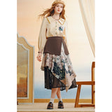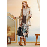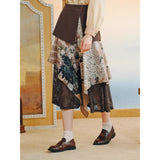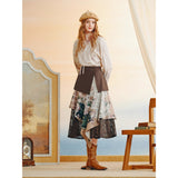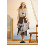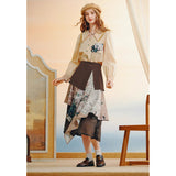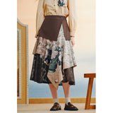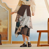 ゴッホが描いた『ボタンとバラのある器』にオマージュを捧げるアシンメトリーなスカート。ウエスト部分の切り替えが印象的。花柄・手紙・レースといった異なる生地が重なり合うことで、コラージュのような独創的な雰囲気を生み出しています。軽やかに揺れる裾は不規則なカットで構成され、ヴィンテージとモダンを融合させたようなアート性の高いデザイン。