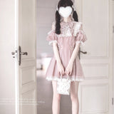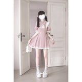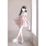 桃色の天使の刺繍フリルワンピース