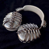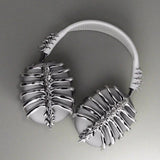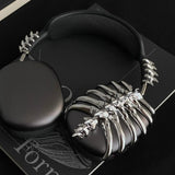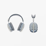 脊椎や肋骨そのものを精密に抽出して再構築したかのような、彫刻的な存在感を放つAirPods Maxアクセサリー。絡みつくように配置されたクローム調の骨格モチーフは、滑らかに湾曲したメタルパーツが規則正しく連なっています。