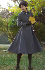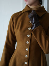1950年代を彷彿とさせるレトロな雰囲気が漂うウールコート。儚げな薫りのする凛とした雰囲気が漂います。ふわっと広がる夢のようなシルエットは乙女の永遠の憧れ。フェミニンな雰囲気をまとわせた冬コーデを楽しんでみて。