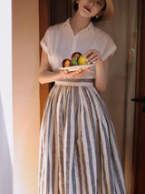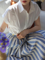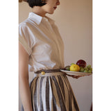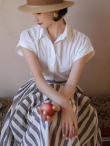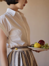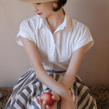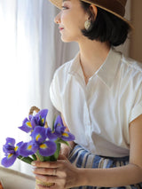 クラシカルな雰囲気が漂うホワイトブラウス。まるで貴婦人のような上品な印象に。ハイウエストなボトムスと合わせると美しさに拍車が掛かります。クラシカルなデザインが美しく格調高き女性を演出してくれるアイテム。