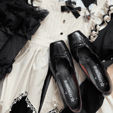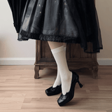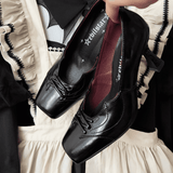 Black Lace Up Square Toe Heel Pumps[2025年10月上旬-10月下旬発送予定]
