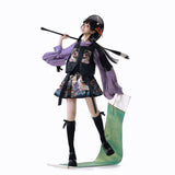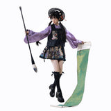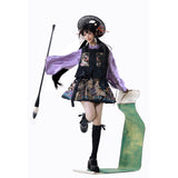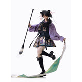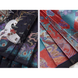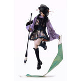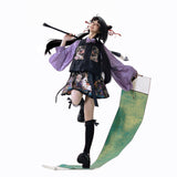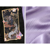 静寂に溶け込むような美しさと、気品あふれる佇まい。プリーツスカートとベストには、神の使いとされる鹿と、艶やかに咲き乱れる色鮮やかな花々、楼閣や雲紋などが光沢のある金糸で紡がれ、ラベンダーパープルのチャイナカラートップスには光沢のある柔らかな生地感となっています。オリエンタルで優美な雰囲気が漂います。美しさは時を超える。