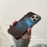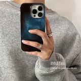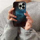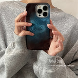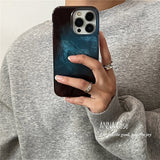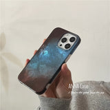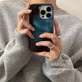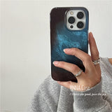 青と茶色を基調としながら、金属箔のような光沢を持たせたiPhoneケース。模様は独特で、自然石や流れる水を連想させる抽象的な美しさが特徴的。