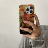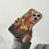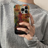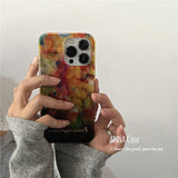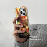 鮮やかでアートのような色彩と、金属箔のような光沢を組み合わせたiPhoneケース。抽象的な模様が独創的。レトロな魅力と光沢感が特徴的。複雑な光の演出に魅了される。