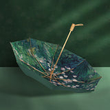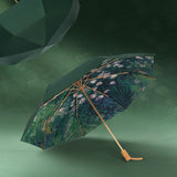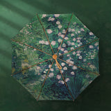 ゴッホの『薔薇』を描いた晴雨兼用の折りたたみ傘。激しく、うねるような深緑に、華麗でしなやかな花を咲かせた薔薇。生地は日差しを遮ってくれる二層構造となっています。日差しの強い日も、雨の日もお使いいただけます。アートな柄が暑い日も、雨の日も気分をあげてくれる。