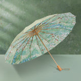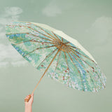 ゴッホの『ドービニーの庭』を描いた折りたたみ傘。陽光が差し入った緑の茂みが爽やかな印象を与えてくれる。バラの花壇には鮮やかな色をつけた花々が咲き誇っています。生地は日差しを遮ってくれる二層構造となっています。日差しの強い日も、雨の日もお使いいただけます。アートな柄が暑い日も、雨の日も気分をあげてくれる。