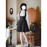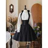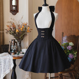 エレガントな英国のお嬢様みたいに演出してくれるショート丈のジャンパースカート。バックの編み上げディテールがアクセントとなり、首の後ろに付けられた大きなリボンが可愛らしさを引き立ててくれる。ホルターストラップとリボンは取り外しが可能となっており、ホルターストラップを外すと、ハイウエストなスカートとしてお召しいただけます。スカート部分はウエストから広がるフレアなシルエットで、動きに合わせて美しいラインを描きます。時代を超えて輝く永遠のスタイル。洗練された気品を纏ったお嬢様に。