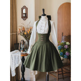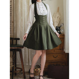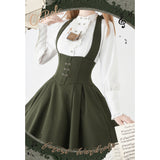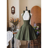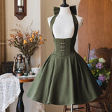 エレガントな英国のお嬢様みたいに演出してくれるショート丈のジャンパースカート。バックの編み上げディテールがアクセントとなり、首の後ろに付けられた大きなリボンが可愛らしさを引き立ててくれる。ホルターストラップとリボンは取り外しが可能となっており、ホルターストラップを外すと、ハイウエストなスカートとしてお召しいただけます。スカート部分はウエストから広がるフレアなシルエットで、動きに合わせて美しいラインを描きます。時代を超えて輝く永遠のスタイル。洗練された気品を纏ったお嬢様に。