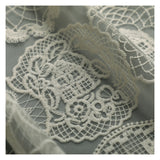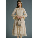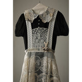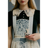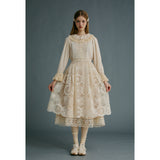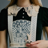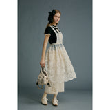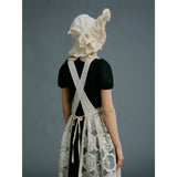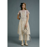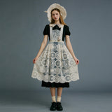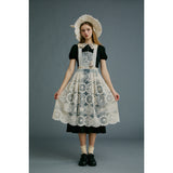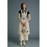 咲き誇る花々。重厚感のある三角屋根の家屋。キュートで愛らしいウサギ。古き良き時代を想起させるレトロな文様を編み込んだ透け感のある刺繍エプロン。幻想的な童話物語の世界に誘われてみて。