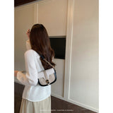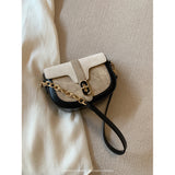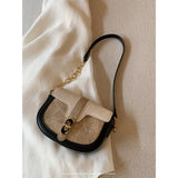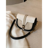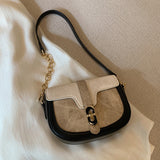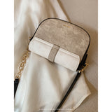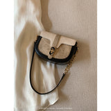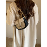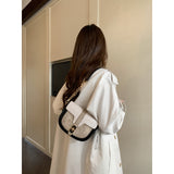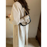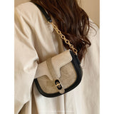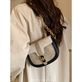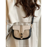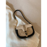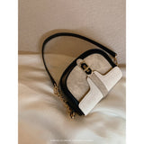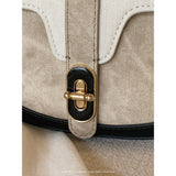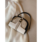 洗練された上品な印象を与えてくれるクラシカルなショルダーバッグ。半円形型のボディに留め具が装飾されており、異なるカラーを組み合わせたデザイン。ショルダーストラップを長くするとクロスバッグ、短くするとバゲットバッグとしてお使いいただけます。
