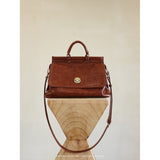 古き良き時代の映画世界に誘われたみたい。どこかに旅したくなるレトロな雰囲気たっぷりのショルダーバッグ。大きめのフラップが特徴的。金色の留め具がバック全体の魅力を引き立ててくれる。ショルダーストラップの長さが調整できるようになっており、取り外していただくことも可能です。