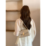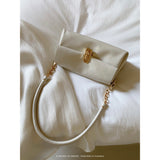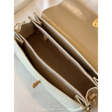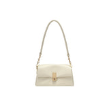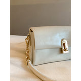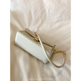 スマホとお財布が入るクリームカラーのショルダーバッグ。ゴールドのチェーンストラップと留め具がアクセントとなっており、上品な雰囲気を醸し出しています。ストラップを取り外して、クラッチバッグとしてもご使用いただけます。
