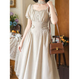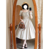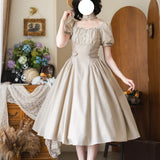クラシカルな美しさを引き出す、品格のある新たな歩みを始めてみて。レトロなシルエットを品よく演出してくれるストライプワンピース。シンプルなラインで仕立てたスクエアネックとなっており、胸元には細やかなギャザーが施され、ふんわりとしたパフスリーブとなっています。ウエストには装飾ディテールを施し、視線を引き寄せます。歩くたび揺れる大きめのフレアスカートは、クラシックな気品を一層際立たせます。
