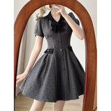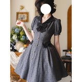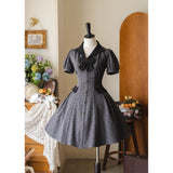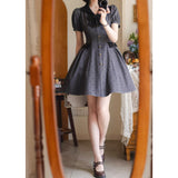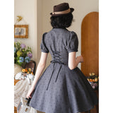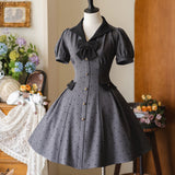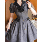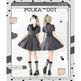 1950年代のレトロスタイルを彷彿とさせるクラシカルなワンピース。ハート型のドット柄が甘く愛らしく、細部までこだわったディテールが上品な印象に。ふんわりとしたパフスリーブが肩のラインをふんわりと見せフェミニンな雰囲気を演出し、小さめのVネックがデコルテを美しく演出してくれます。バックには編み上げが施されており、ウエストはしっかりと絞られており、スカート部分はふんわりと広がるフレアライン。レトロなムードと現代的な魅力が絶妙に交差し、濃密なレトロロマンティックな空気感を纏わせます。