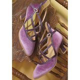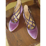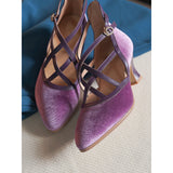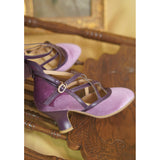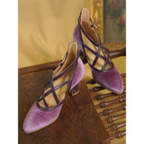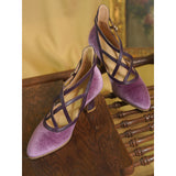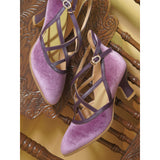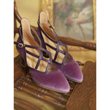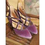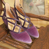 物語の中のヒロインみたいに演出してくれるクラシカルなヒールパンプス。深みのあるパープルベルベットで仕立てたアイテムで、足元を美しく見せるクロスストラップが印象的。熟練の職人によって丁寧に縫製されたアイテム。現代的な美学と履き心地を追求した日常でも使いやすいクラシカルなシューズ。