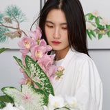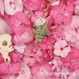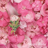 ゴッホが描いた『キョウチクトウのある花瓶』のキョウチクトウをモチーフにしたブローチ。それは雨の中に楚々と咲く花。軽妙な筆致で描かれた色鮮やかな桃色のキョウチクトウが美しい。胸元に付けると、優雅でロマンティックな雰囲気が漂います。