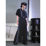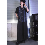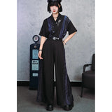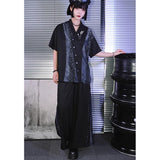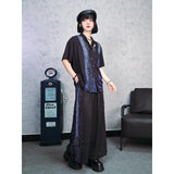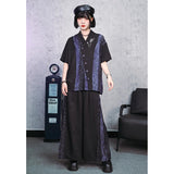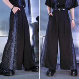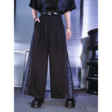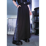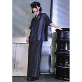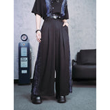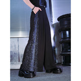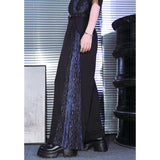 鱗をまとう幻想の境界線。モードに昇華されたワイドパンツ。艶やかなブラック生地に、藍紫の蛇柄のサイドパネルがミステリアスな個性を演出してくれる。深めのタックが入ったゆったりとしたシルエットで、程よいドレープ感があり、動くたびに美しい落ち感が楽しめます。