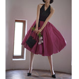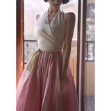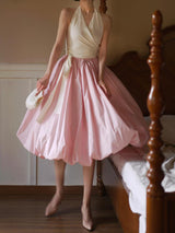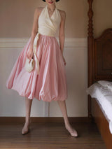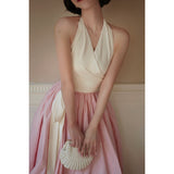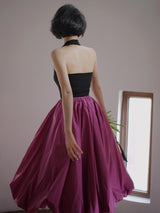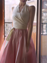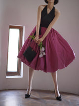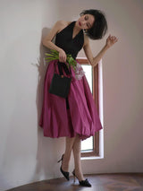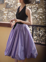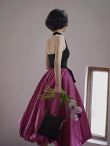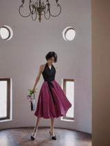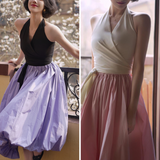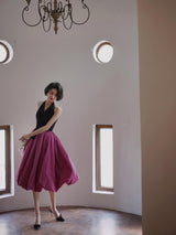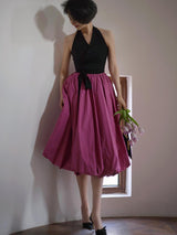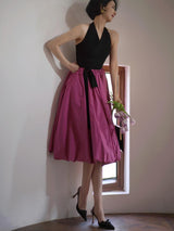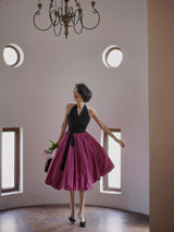 1950年代の銀幕女優を彷彿とさせる、バックがオープンとなったスリムタンクトップ。ブラックとオフホワイトの2色展開です。胸元とウエストを強調させた洗練された華やかなデザイン。ウエストは絞って紐を垂らしたデザインとなっています。時代を超えて愛されるアイテム。