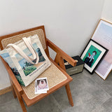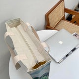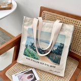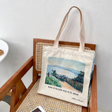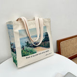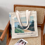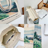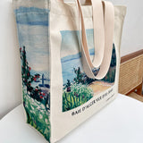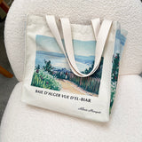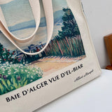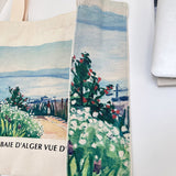 アルベール・マルケの『エルビアールから見たアルジェ湾』を描いたトートバッグ。彼方まで見渡せるアルジェ湾の青い海。豊かな緑の木々と、色鮮やかに咲き乱れる花々が描かれています。厚手のキャンバス生地で作られており、たっぷりの収納力が嬉しい。内側にはポケットが付属しています。パソコンやお気に入りの本を詰めてお出掛けしてみて。