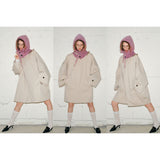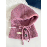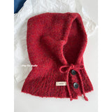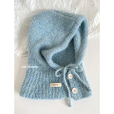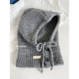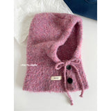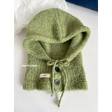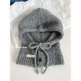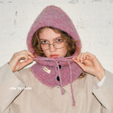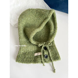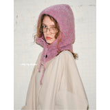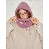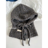 ガールに戻れるキュートなニットフード。頭をすっぽりと覆ってくれる可愛らしいフォルム。首元でリボンを結べるようになっています。キュートさを忘れないカジュアルスタイル。