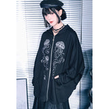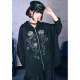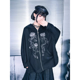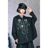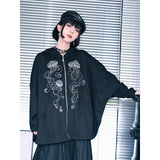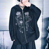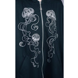 ゆらゆらと静かに浮かんでいるような神秘的なクラゲを描いたジップアップフーディー。ゆったりとしたシルエットのアイテムで、胸元には流れるように描かれたクラゲの線画が左右に配置され、モノトーンながらも印象的なデザインに仕上がっています。カジュアルでありながらアーティスティックな雰囲気を漂わせる一枚。