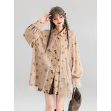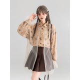 森の中で静かに生きる小さな妖精。森の奥底に佇む小さな賢人。可愛らしいフォルムの”きのこ”を描いたブラウス。ふんわりとしたオーバーサイズシルエットで、透け感のあるチュールがレイヤードされており、幻想的でロマンティックな雰囲気を演出しています。