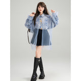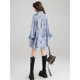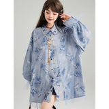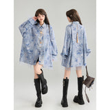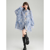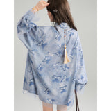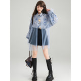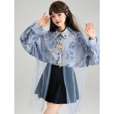 霞んだ空を優雅に舞う蝶々。甘い花の蜜を求めて、ひらひらと舞う蝶々を幻想的に描いたブラウス。ふんわりとしたオーバーサイズシルエットで、透け感のあるチュールがレイヤードされており、幻想的でロマンティックな雰囲気を演出しています。