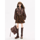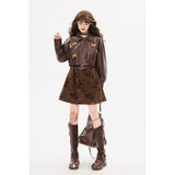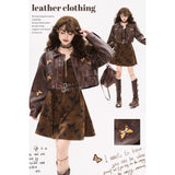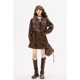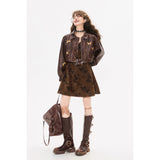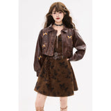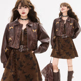 黄色い蝶々の刺繍が散りばめられたクロップド丈のレザージャケット。全体にヴィンテージ感のある艶めきがあるテクスチャ。ショート丈のシルエットが軽快で、スカートやワンピースとも好相性な一着。遊び心とガーリーさを兼ね備えたアイテム。