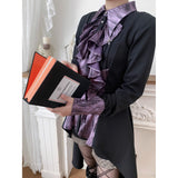 中世貴族のヴィクトリアンテールブラウス - Black Purple[2025年12月上旬-12月下旬発送予定]