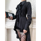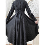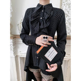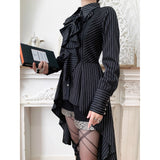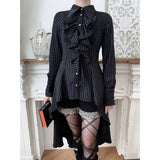 中世貴族のヴィクトリアンテールブラウス - Black Pin Stripe[2025年12月上旬-12月下旬発送予定]