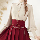 幾何学的な模様が金糸で刺繍されたブラウス。直線や曲線が複雑に組み合わさったデザインで、シンメトリック(対称的)な構造が強調されています。1920年代から1930年代にかけて流行したアールデコを想起させるデザイン。東洋と西洋の美的要素を組み合わせたアイテム。