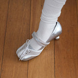 独創性が奏でるバランス感。都会の洗練を纏った、近未来的な輝きを放つメリージェーンシューズ。トゥ部分には編み上げが装飾されており、高さのあるヒールがスタイルアップを叶えてくれる。
