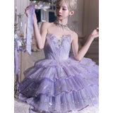 星のきらめきが、静かに降り注ぐ。地上に舞い降りた美しきヴィーナスみたいに演出してくれるティアードジャンパースカート。煌めくラメと繊細な刺繍が光を受けて輝き、立体的なプリーツと幾重にも重ねられたチュールが、まるで舞踏会のプリンセスのような気品と華やぎを醸し出しています。