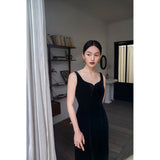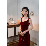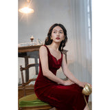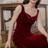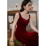 艶やかなベルベットがエレガントな雰囲気に演出してくれるストラップワンピース。ウエストラインを美しく魅せたシルエット。伯爵邸で催される舞踏会に誘われた貴婦人みたいに。時代を超えて愛される優雅なアイテム。