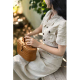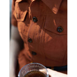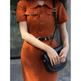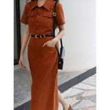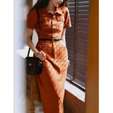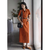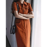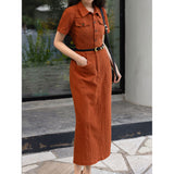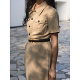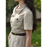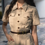 1980年代を想起させるレトロなワンピース。胸部分にポケットが装飾されたワークウェアなデザイン。細めのベルトを合わせたコーデは雰囲気たっぷり。誇張されたシルエットが表現する、自信と力強さを堪能してみて。