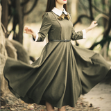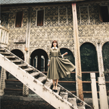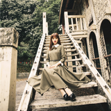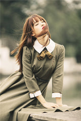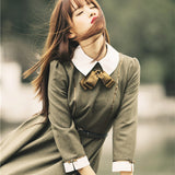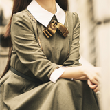 襟元のリボンが可愛らしく、美しく映えるワンピース。艶やかで美しいその姿に見惚れてしまう。程よい丈感が清楚さを演出してくれます。可憐な雰囲気を纏ったワンピースを思う存分楽しんでみて。