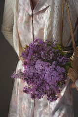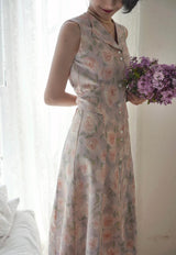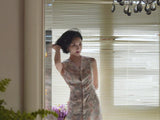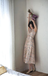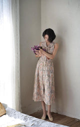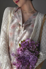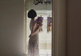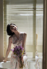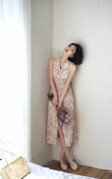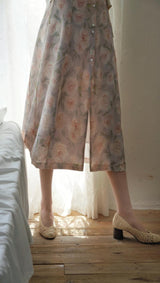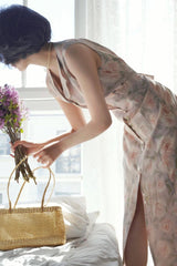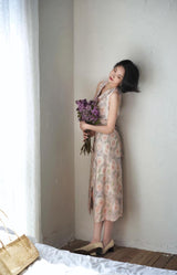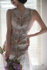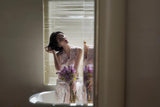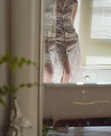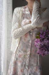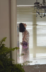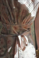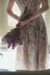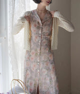 みずみずしく幻想的に咲き誇った薔薇の花を描いたクラシカルなワンピース。陽光が射し入る薔薇の花園に迷い込んだみたい。くびれを強調させたデザインで、バックでリボンを結べるようになっています。優雅でロマンティックな貴婦人に。
