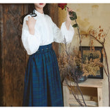 1950年代を彷彿とさせるレトロな印象のチェック柄のアンブレラスカート。幅の広いウエストベルトが装飾されており、ふわりと広がるシルエットは優雅な雰囲気たっぷり。時代を超えて愛されるレトロなアイテム。