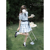透明感にあふれる澄み渡る空みたい。優美で気品ある上品さを湛えるティアードワンピース。幾重にも生地を重ねたスカート部分。胸元にはフリルとプリーツがふんだんに装飾されています。端正な品格と愛らしさを際立たせてくれるアイテム。