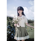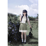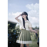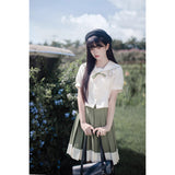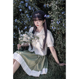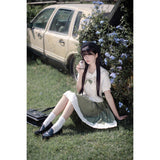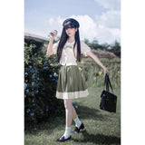 無邪気な日々を象徴する青春の象徴。規律と個性の狭間にある矛盾や葛藤を内包したセーラーブラウスとプリーツスカート。襟の縁にはレース刺繍が装飾されています。思春期の鎧に身を纏って、大人への門出を控えた儚げな美しさを解き放ってみて。