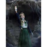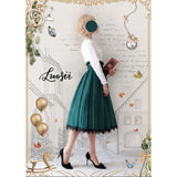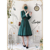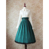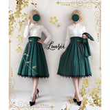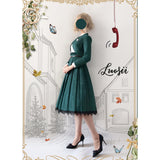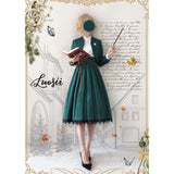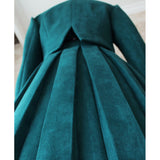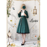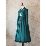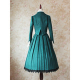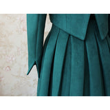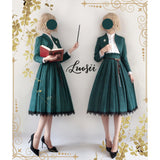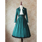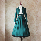 深緑のお嬢様のテールジャケットとプリーツスカート