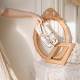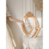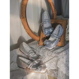 光沢感のあるサテン素材に大きなリボンをあしらった、クラシカルでガーリーなバレエシューズ。ダブルストラップにゴールドのバックルが施され、フロントの立体的なリボンには小さなチャームが輝きを添えています。スクエアトゥのフォルムが上品さを強調し、ガーリーさの中にクラシカルな落ち着きを感じさせます。