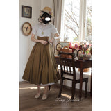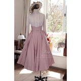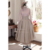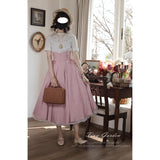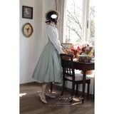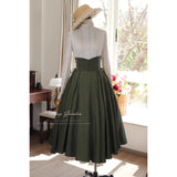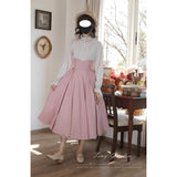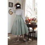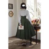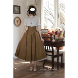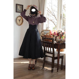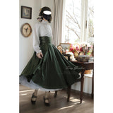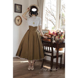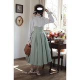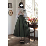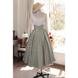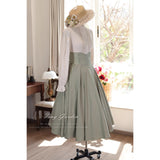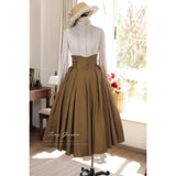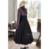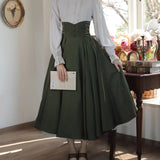 深く引き締められたハイウエストが印象的な、クラシカルなフレアスカート。ウエスト部分はコルセットのように立体的に構築され、両サイドのレースアップが繊細な陰影を添えながら、優雅なくびれのラインを際立たせます。そこから滑らかに広がるスカートは、たっぷりとした分量感で静かに波打ち、装飾を抑えた無地の質感がかえって気品を引き立てる仕立て。アンティークな気配を纏いながらも凛とした佇まいを見せる、落ち着いた優雅さのある一着。