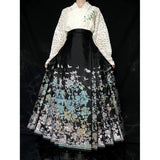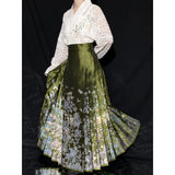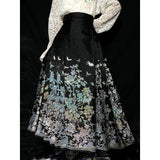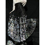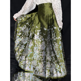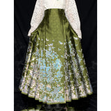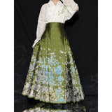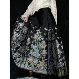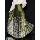 豪華絢爛な姿で、花々の中で君臨する威厳ある存在の牡丹の花。色とりどりの花々の中で、軽やかに優雅に舞う蝶々。宮廷の威厳と優雅さを纏ったロングプリーツスカート。礼節と道徳を纏った哲学的な装い。オリエンタルで優美な雰囲気が漂います。美しさは時を超える。