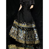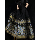 死と再生を繰り返し、時を超えて舞い続ける不滅の存在である不死鳥。色彩豊かな姿で絢爛に咲く花々。永遠に続く伝説と相反する一瞬の美しさを描いたロングプリーツスカート。礼節と道徳を纏った哲学的な装い。オリエンタルで優美な雰囲気が漂います。美しさは時を超える。