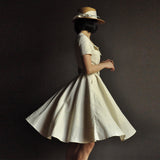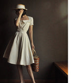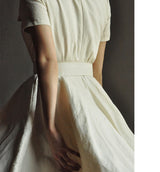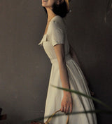 レトロな雰囲気が漂うワンピース。儚げで凛とした雰囲気が漂ってきます。気品溢れる美しいその姿に見惚れてしまう。雰囲気をいかして、ちょっぴりレトロなドリーミーガールにコーディネート。可憐な雰囲気を纏ったワンピースを思う存分楽しんでみて。