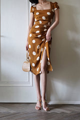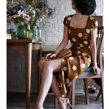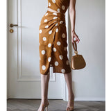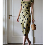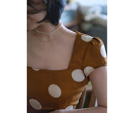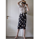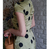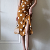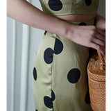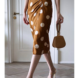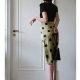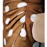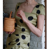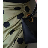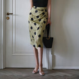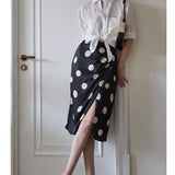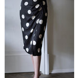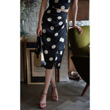 気品溢れるクラシックな水玉スカート。歩くたび、ふわり。乙女の憧れ、ふわっと広がる夢のようなシルエット。水玉模様と気品ある色合いが美しく、とても上品に仕上がったスカート。カジュアルにも綺麗めにもスタイリングできます。