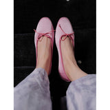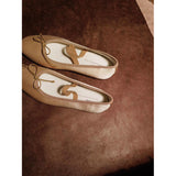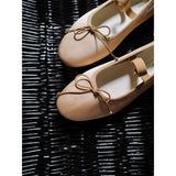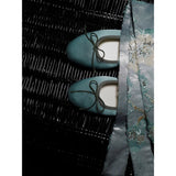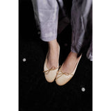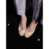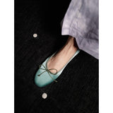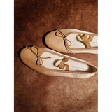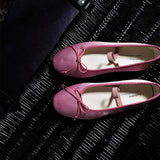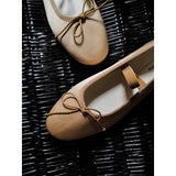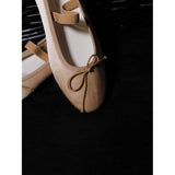 美しく上品な色が、日常にささやかなロマンを添えてくれるバレエシューズ。つま先には小さなリボンが結ばれ、控えめながらも愛らしさを引き立てています。足にやさしく寄り添う曲線と、ほんのり光沢を帯びた質感が、優雅な佇まいを演出。少女の頃の記憶をくすぐるような、ノスタルジックで穏やかな空気を纏った一足。