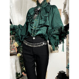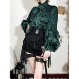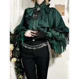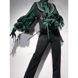 大胆な存在感。幾重にも重なった生地とレース刺繍が華やかな印象を与えてくれるエレガントなブラウス。胸の高鳴りが止まらない。膨らみのある袖、絢爛に飾られた首元。ハイネックなシルエットは高貴なお嬢様みたいに演出してくれる。